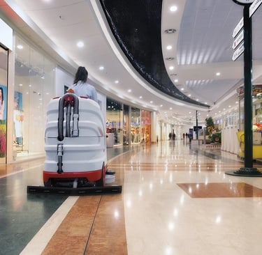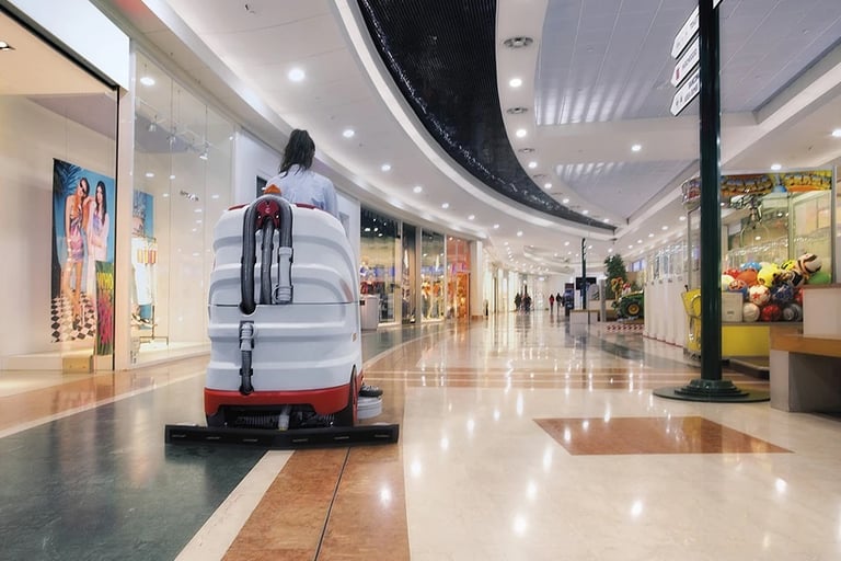 Limpieza de espacios con alta afluencia y gran magnitud, como centros comerciales